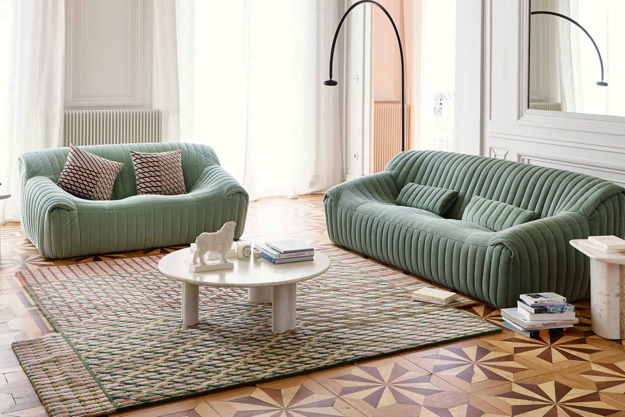 Another major creation by Michel Ducaroy, the Kashima sofa (1970) has recently been reissued by Ligne Roset for contemporary interiors. With its fluid lines and impeccable comfort, Kashima beautifully complements the collection of icons, offering a chic and original alternative to the Togo.