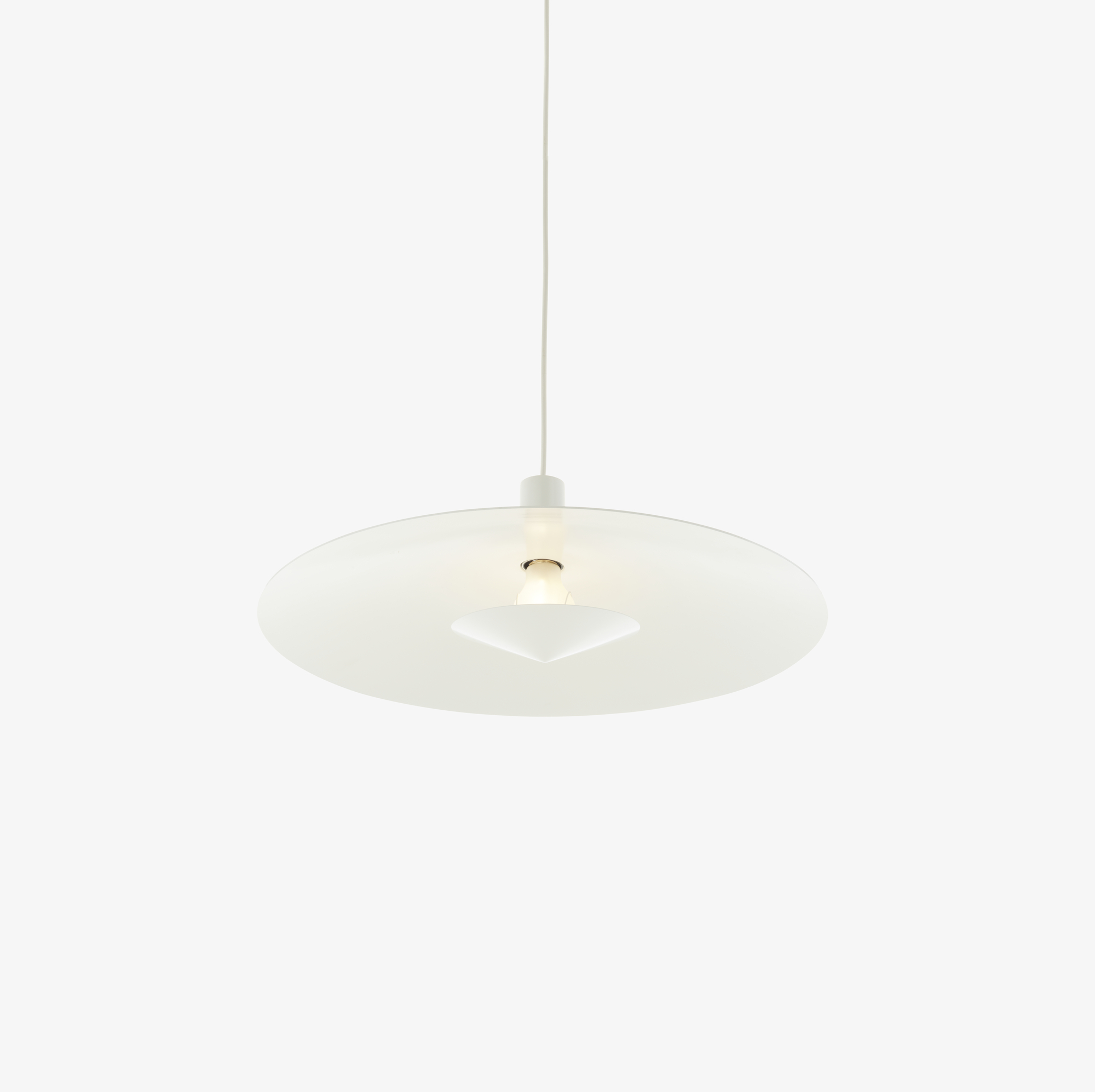 Designed in 1950 by Pierre Paulin, the Suspension 3080 is an iconic re-edition of a French mid-century lighting classic, exclusively produced by Ligne Roset. With its spun aluminum shade in satin white lacquer (Ø 53 cm), it embodies purity, balance and timeless elegance.