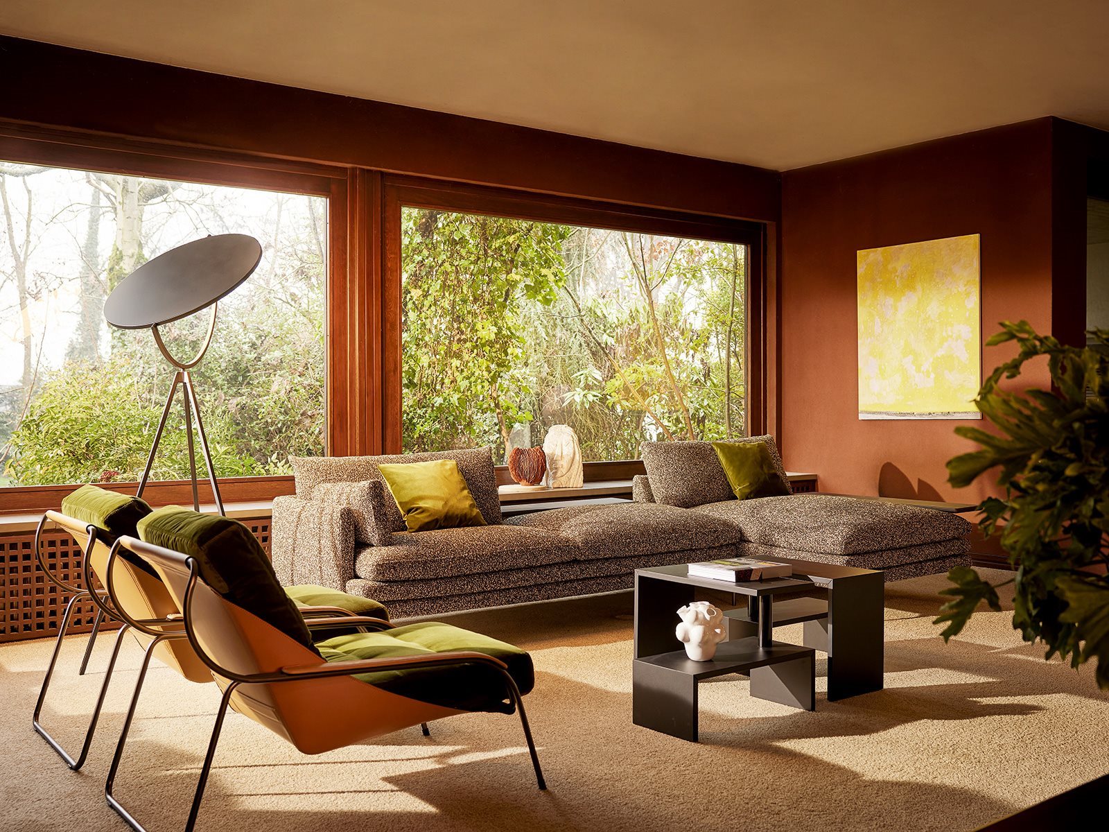 Both a coffee table and a storage unit, Basello, designed by Achille Castiglioni for Zanotta, combines simplicity and functionality in an elegant design. Basello is a double-height coffee table with a variable opening, designed by Achille Castiglioni for Zanotta. The structure is made of medium-density fiberboard, scratch-resistant embossed lacquered in talc (off-white), hemp (beige), amaranth red, espresso (brown), and black, and is framed by a black lacquered steel structure (for the hemp, amaranth red, espresso, and black versions) or talc (for the talc version). Basello offers practical storage space while remaining light and discreet. Its minimalist design, with clean lines, allows it to be easily integrated into various types of interiors, from the most modern to the most classic.