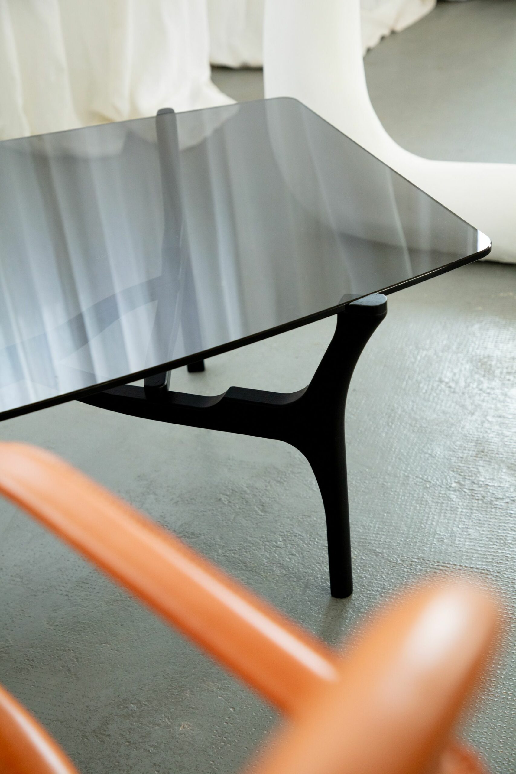 La table basse Carlina de BD Barcelona Design, signée Oscar Tusquets Blanca, s’impose comme une pièce sculpturale au charme magnétique. Réalisée avec un plateau en verre trempé fumé qui semble flotter dans l’espace, elle repose sur une base en frêne massif FSC teinté noir, dont les lignes organiques évoquent des formes vivantes et presque anthropomorphiques. Chaque détail traduit un savoir-faire artisanal d’exception, où transparence et solidité se rencontrent dans un équilibre parfait.