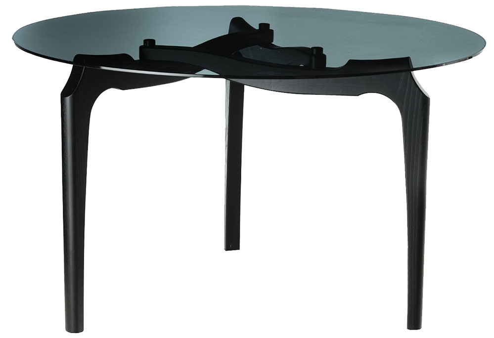 The Carlina Round by BD Barcelona is a sculptural dining table that perfectly balances bold contemporary design with refined craftsmanship. Created by Oscar Tusquets Blanca, it captivates with its smoked tempered glass top, floating like a mirrored surface, supported by an ash wood frame in deep black, where intertwined wooden elements resemble knotted fingers or bent knees. This organic play of forms creates a refined visual tension, enhanced by the contrast of materials and the purity of the circle.