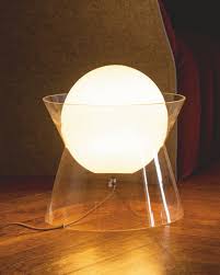 The From the Moon table lamp by Ligne Roset, designed by Atelier Ferraro, embodies a poetic and timeless vision of light. Its design is built around a luminous sphere made of frosted and pearlescent opaline glass, evoking the soft glow and mystery of the moon. Suspended above a conical base, the sphere appears to float weightlessly, as if illuminated from afar.