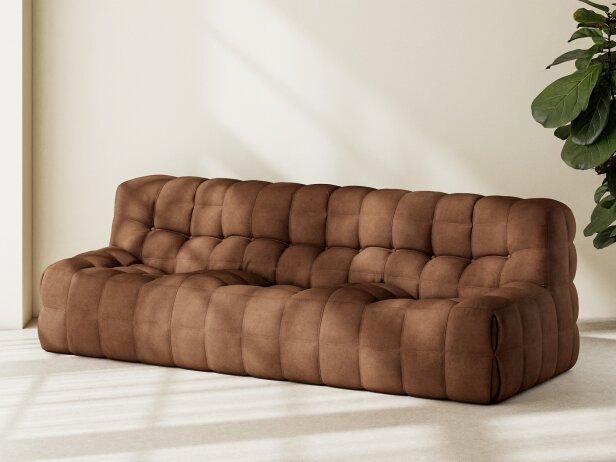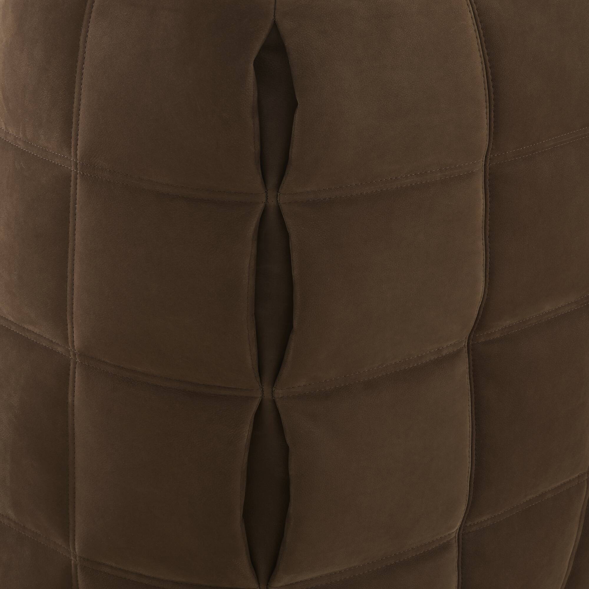 The tufting, achieved through invisible internal pull-ties embedded within the foam, highlights the technical mastery behind the piece. Its fully quilted cover forms distinctive pinched seams at the corners, reinforced with internal lacing, adding depth and character.
