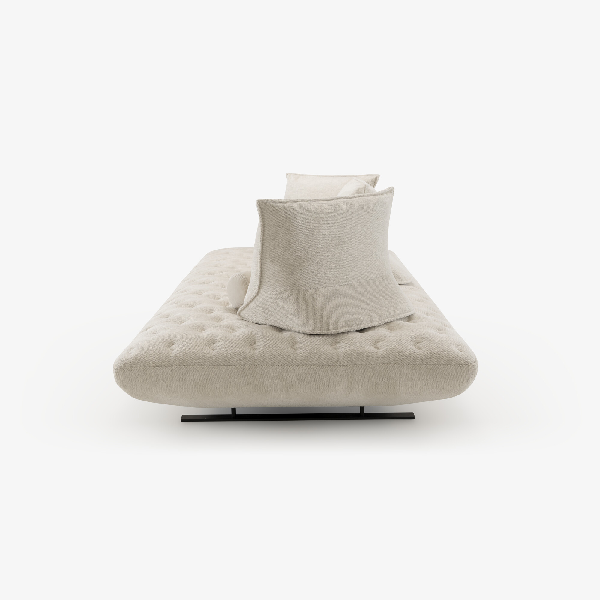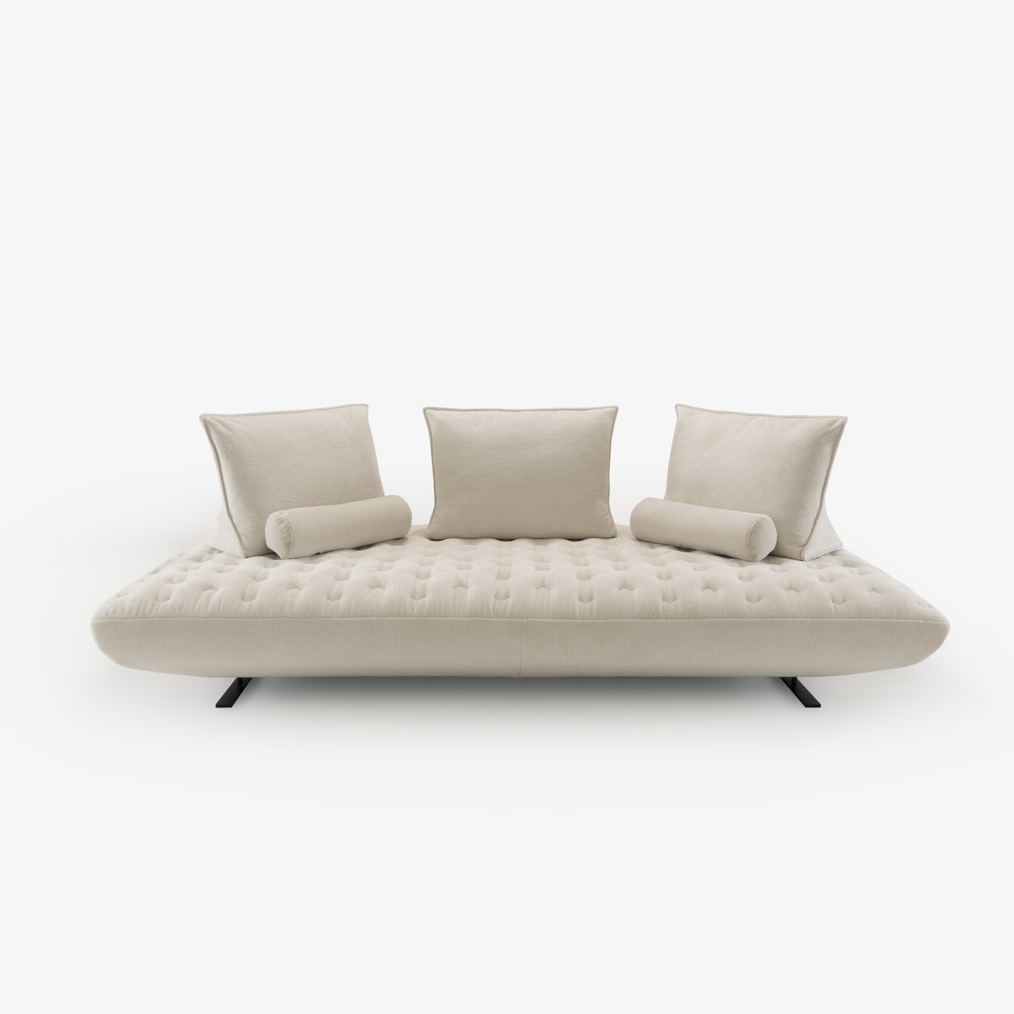 The quilted version has a cover sewn crosswise, avoiding any stitching on the seat. Only a single seam runs through the center, aligned with the sofa structure. In this version, the seat cushion cannot be flipped to transform into a bed, and the base is now a monoblock. The sofa legs are identical to those of the standard Prado model. Leather is not available due to the highly segmented quilting.