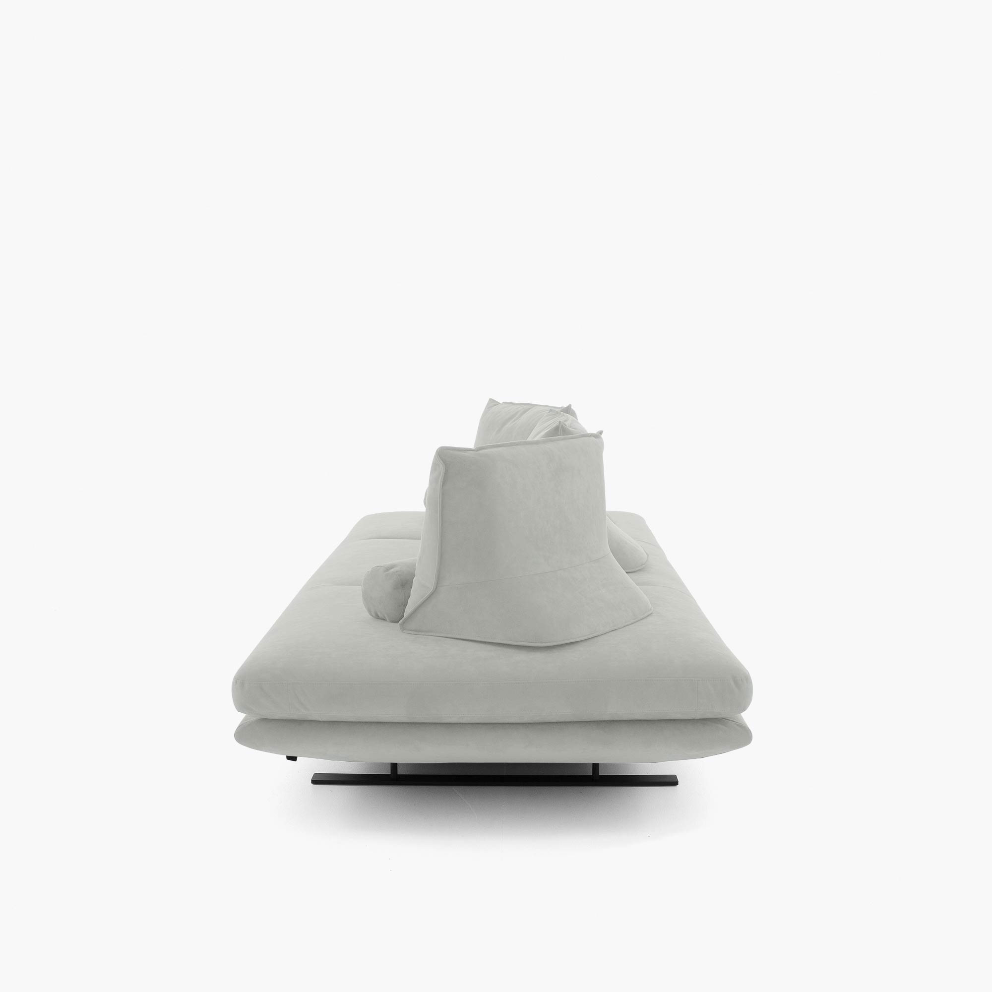 The quilted version has a cover sewn crosswise, avoiding any stitching on the seat. Only a single seam runs through the center, aligned with the sofa structure. In this version, the seat cushion cannot be flipped to transform into a bed, and the base is now a monoblock. The sofa legs are identical to those of the standard Prado model. Leather is not available due to the highly segmented quilting.