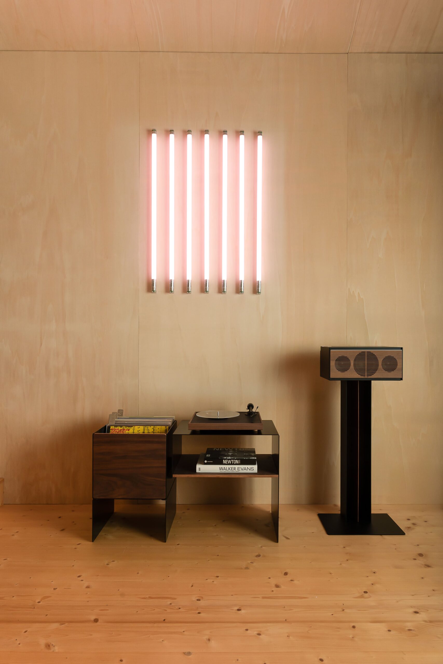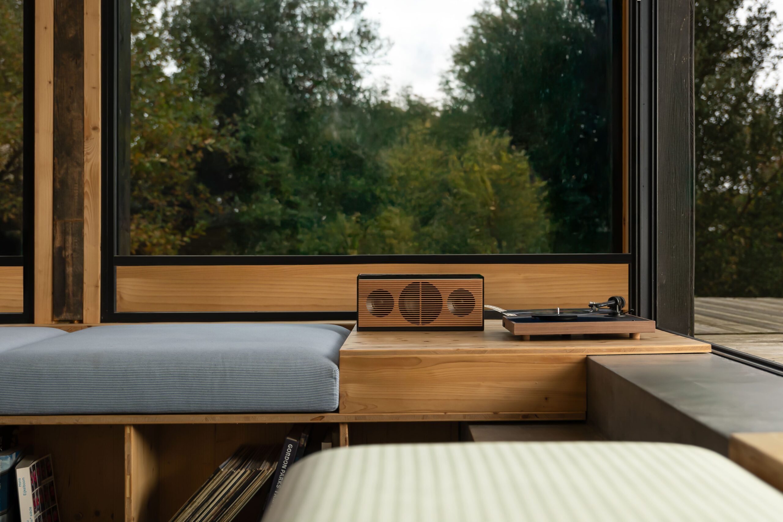 Beneath its sleek, minimalist exterior lies meticulous craftsmanship. Its solid wood cabinet (walnut or oak), adorned with premium leather, reflects European artisanal expertise. Compact (35 × 35 × 10.8 cm), the Square CC stands out as a sculptural piece, subtle yet impactful.