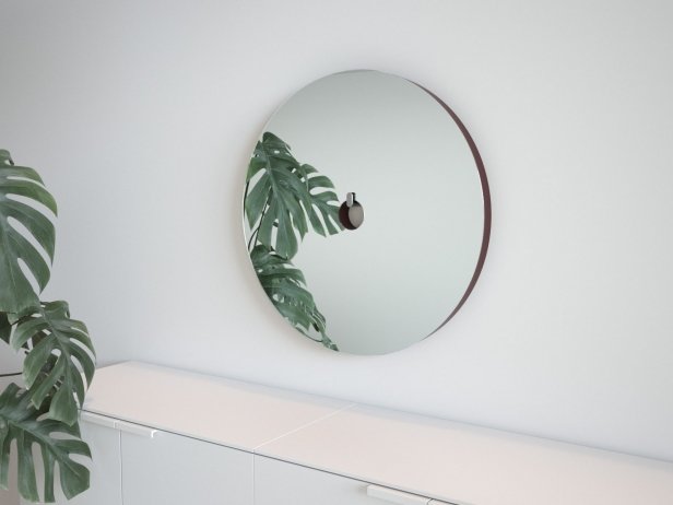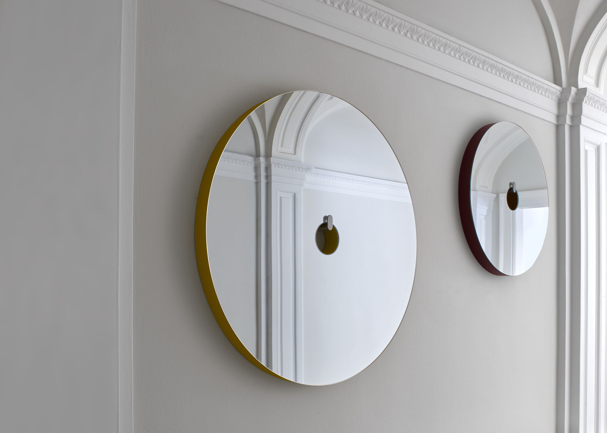 The Ura mirror by Ligne Roset, designed by Pierre Charpin, combines contemporary elegance with formal simplicity. Its round shape and lacquered plywood frame create a refined presence on the wall while softly reflecting light.