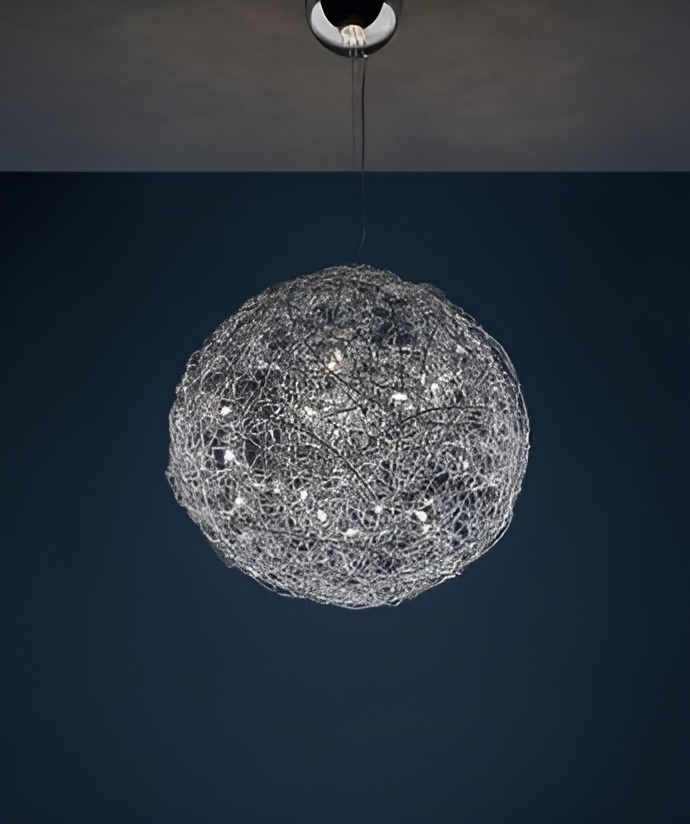 Fil de Fer – Suspension artistique en fils métalliques, jouant avec les ombres et la lumière pour un rendu graphique unique.