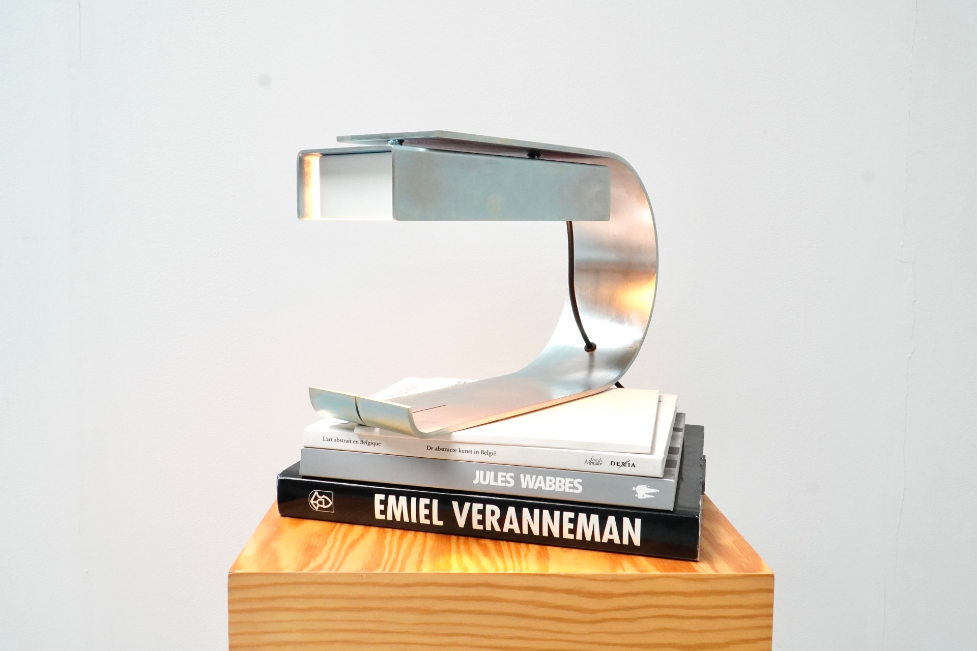 réée en 1968 par le designer belge Christophe Gevers et rééditée par Axis71, la lampe CG01 incarne l’élégance du design belge dans sa plus pure expression. Dans cette version en acier galvanisé, elle dévoile une esthétique industrielle subtile, mêlant rigueur géométrique et texture métallique raffinée.
