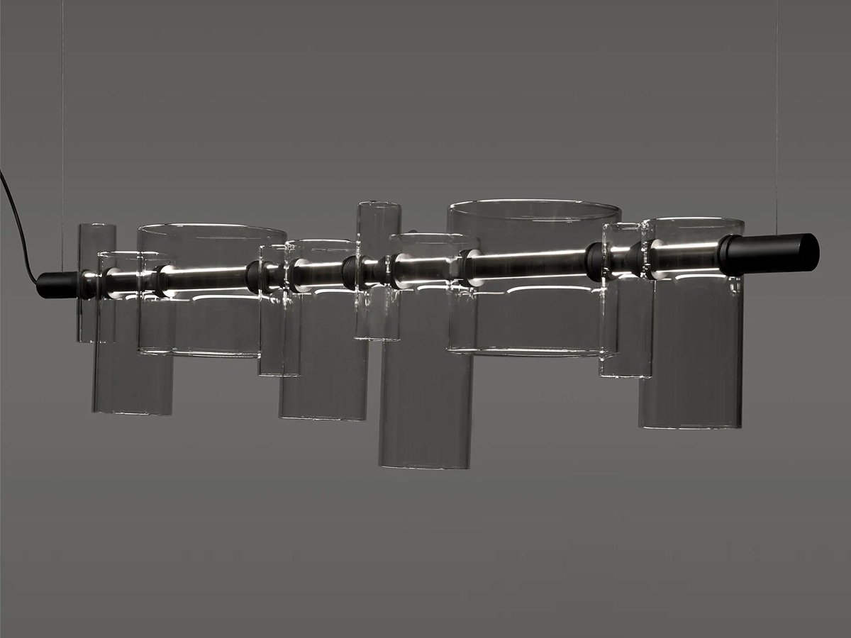 Pensée comme une pièce centrale, la suspension Dancing Glass s’intègre parfaitement au-dessus d’une table de salle à manger, dans un salon ou dans un espace professionnel haut de gamme. Elle reflète avec élégance le savoir-faire d’Oluce et la vision minimaliste et architecturale de Victor Vasilev.
