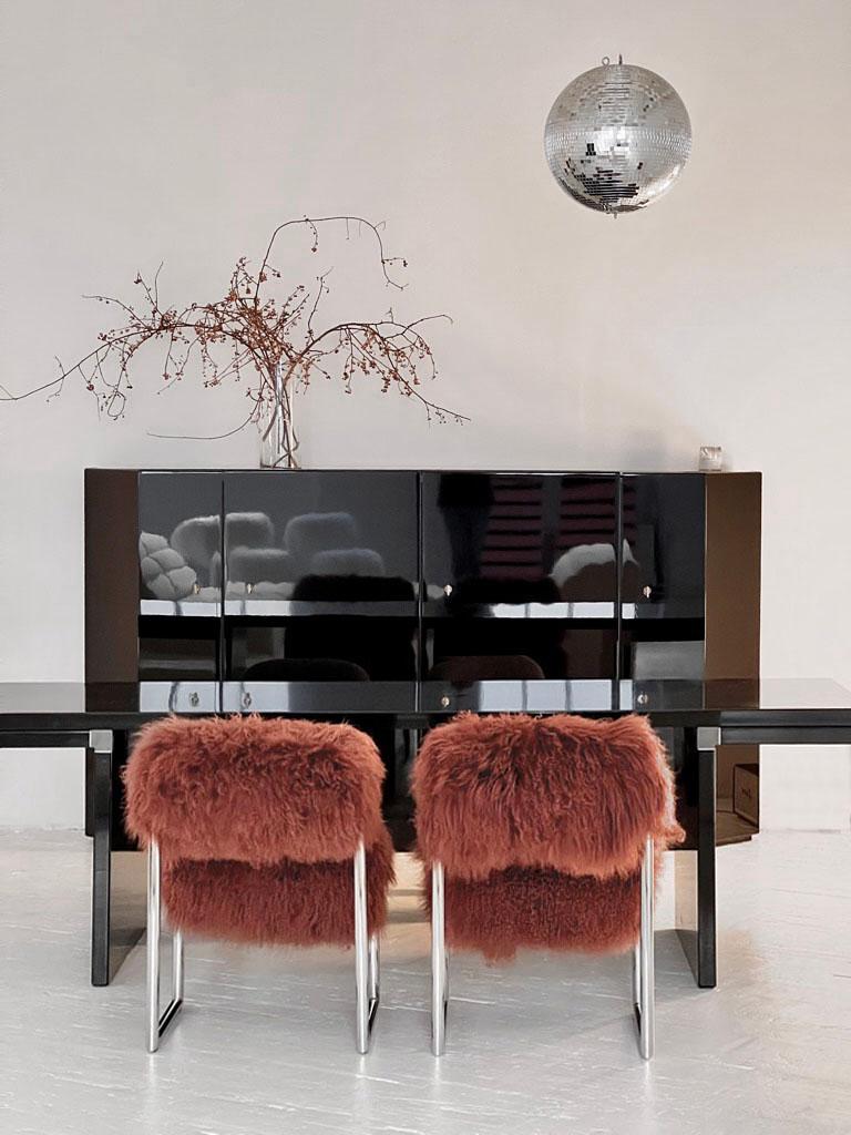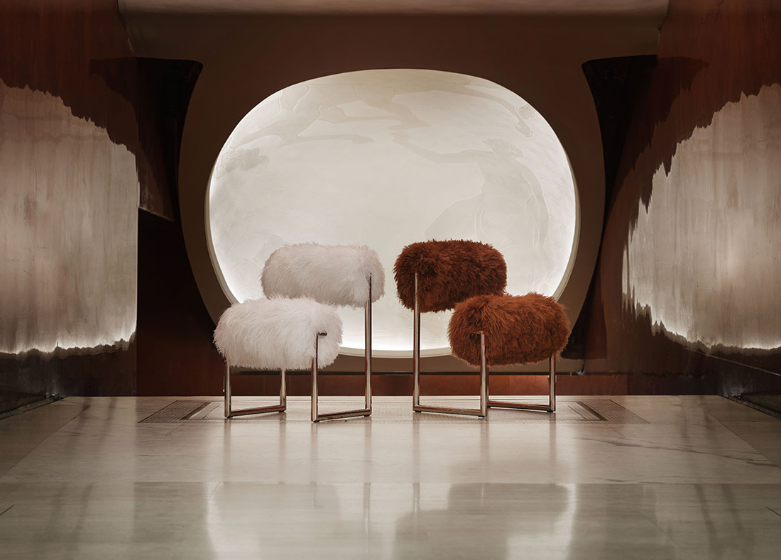 Revêtement : fourrure de chèvre de Mongolie, issue de l’industrie alimentaire (approche durable)