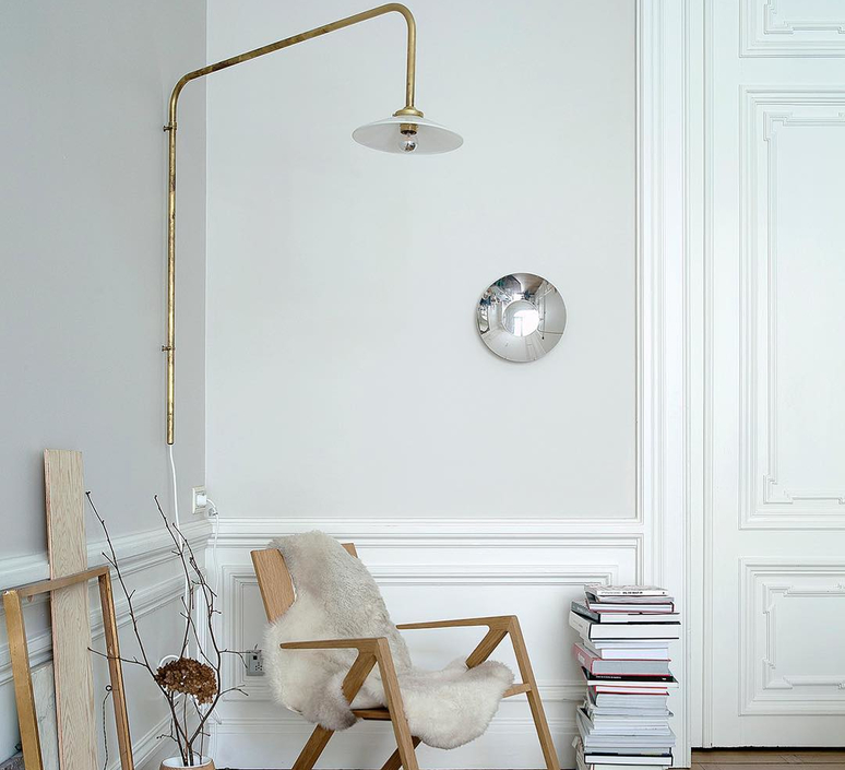 Disponible en bleu, vert, noir, ivoire, rouge ou laiton, la Hanging Lamp n°5 s’adapte à tous les intérieurs, du salon au bureau, et offre une présence sculpturale unique. Fixée au mur, elle se déplace latéralement pour ajuster subtilement la lumière.