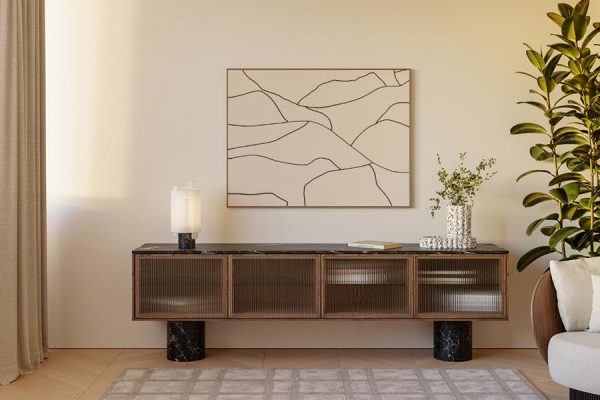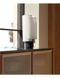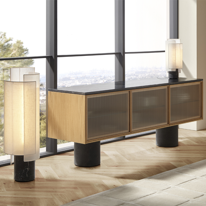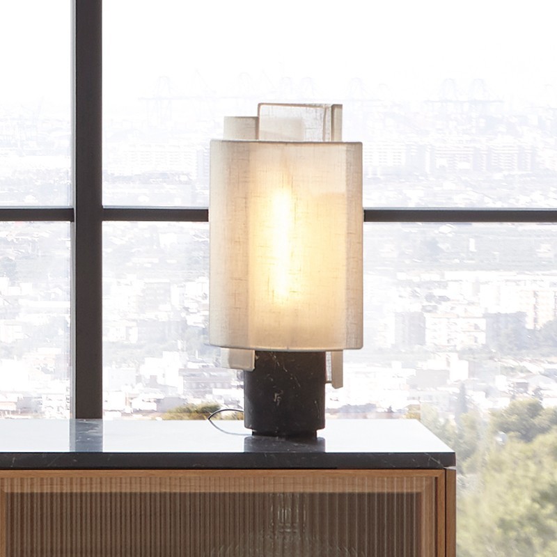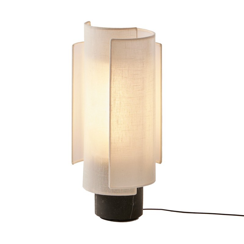 La lampe de table Rio de Punt Mobles, imaginée par Sebastian Herkner, apporte une présence douce et sculpturale à tout intérieur. Son abat-jour en coton naturel, composé de voiles superposées, crée un jeu de transparences subtil qui rappelle la finesse des lanternes artisanales. Cette légèreté visuelle contraste avec l’élégance de sa base en marbre Marquina, ancrant la lampe dans une sophistication intemporelle.