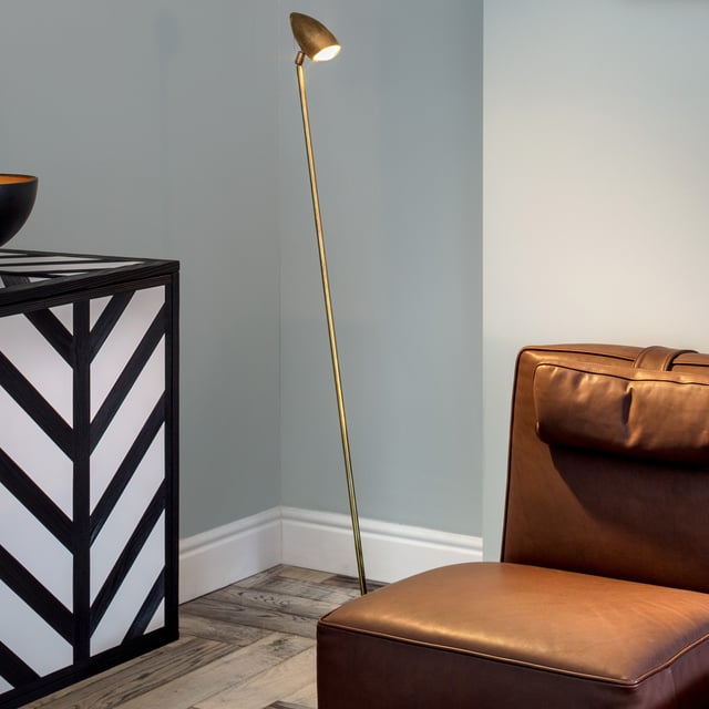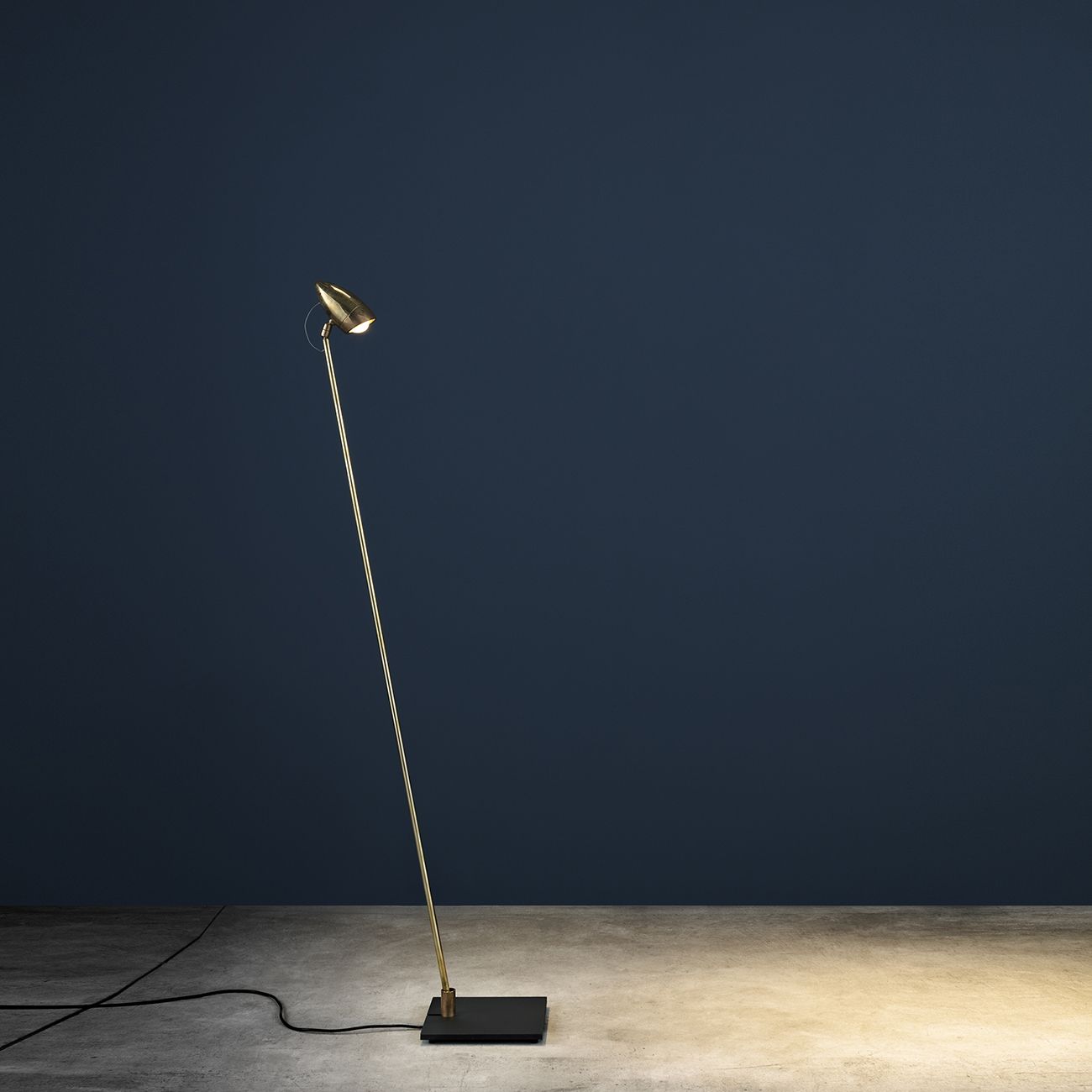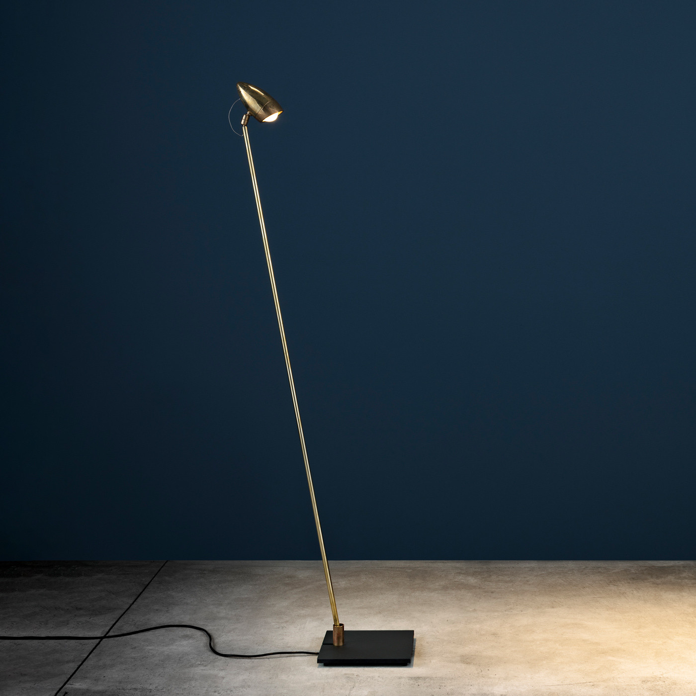 Sa structure élancée en laiton façonné à la main confère au luminaire une présence à la fois discrète et précieuse. Le laiton, laissé volontairement naturel, se patine avec le temps, donnant à chaque pièce un caractère unique. La lentille en verre sablé diffuse une lumière chaude et maîtrisée, idéale pour accompagner un moment de lecture ou créer une atmosphère feutrée.