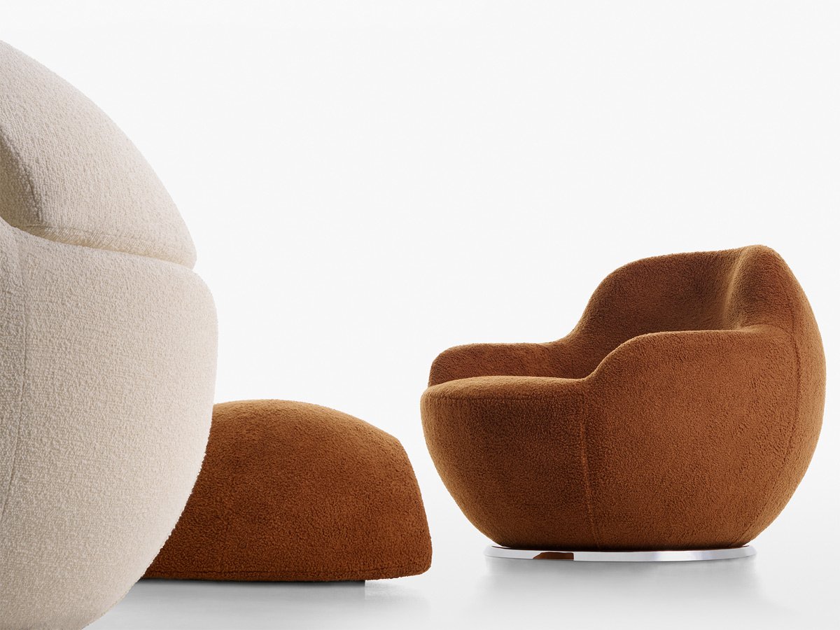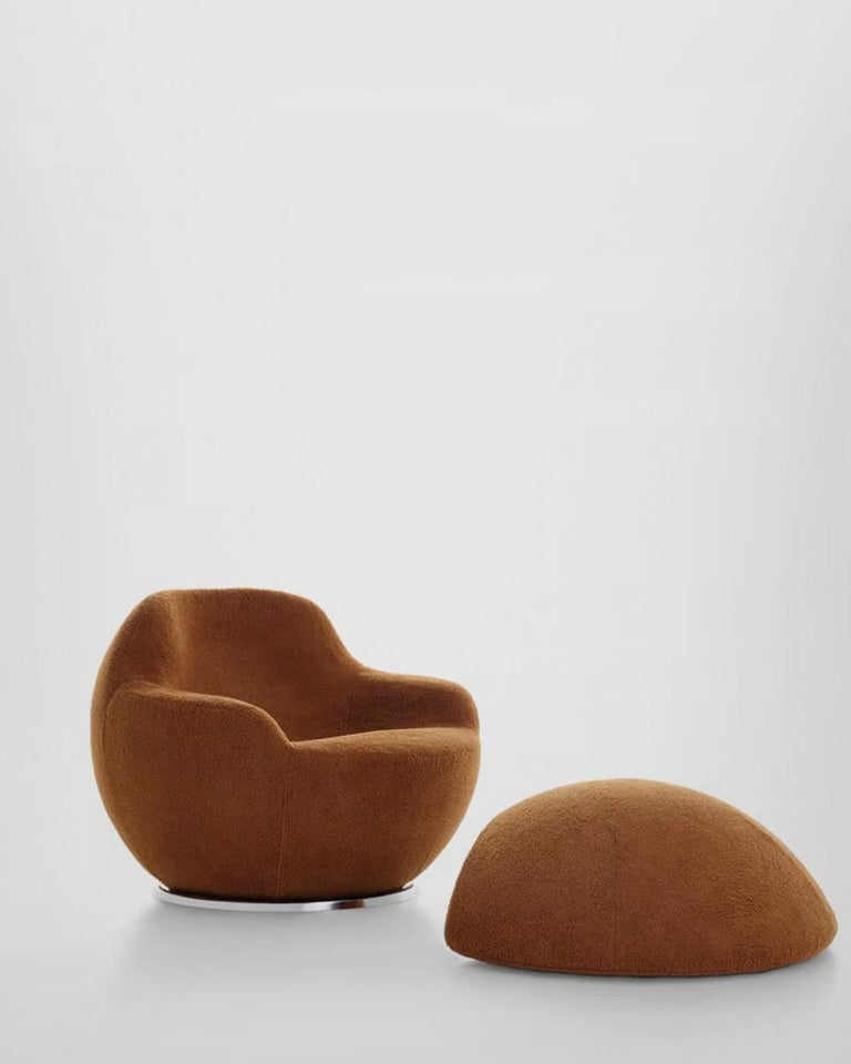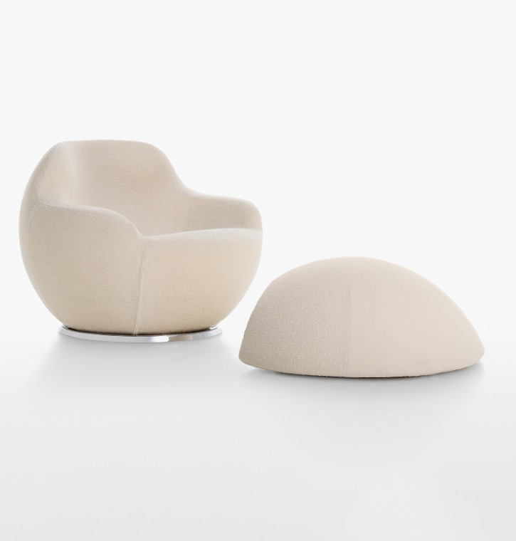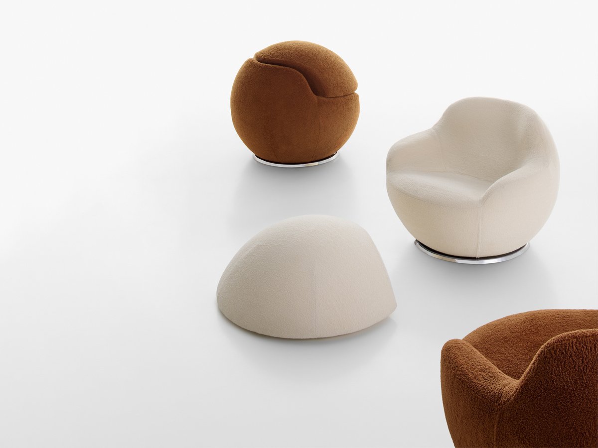 Créé en 1966 par Claudio Salocchi, réédité depuis 2025, le fauteuil Palla d’Acerbis est une pièce iconique qui réinvente le confort à partir de la forme la plus essentielle : la sphère. Salocchi décompose ce volume pur pour imaginer un fauteuil et un pouf qui s’emboîtent harmonieusement, mêlant géométrie rigoureuse et douceur enveloppante.