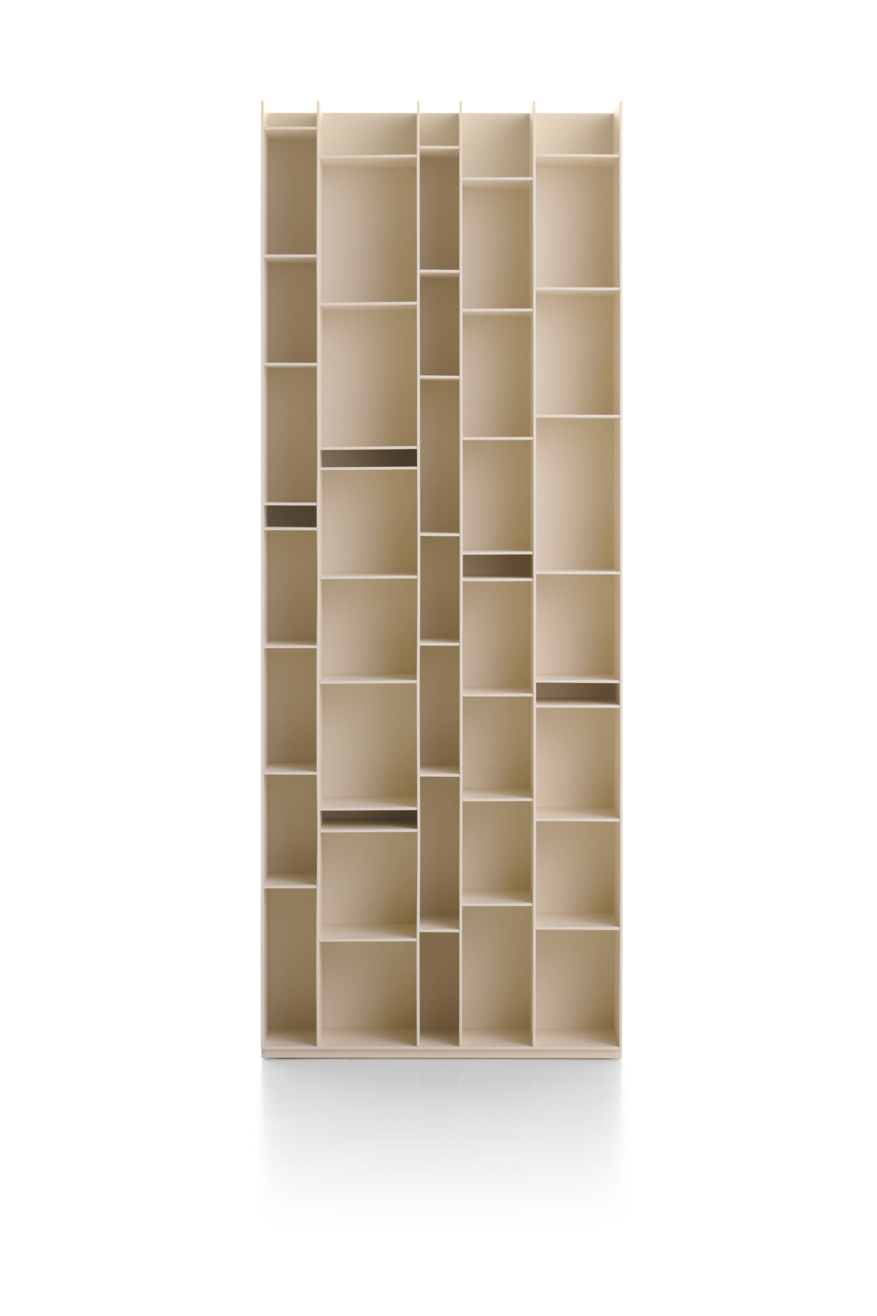 Matériaux: | Bibliothèque en MDF de 6 mm d’épaisseur, laqué mat (micro-gaufré) en blanc, ivoire ou gris moyen, et dos en panneau mélaminé (épaisseur 10 mm). Les modules, à 2 et 3 travées, peuvent être utilisés seuls ou combinés avec le modèle 5C pour permettre une plus grande flexibilité et améliorer la modularité de l’ensemble de la collection. Les modules 2C et 3C sont disponibles en laque mate en blanc, ivoire, gris moyen, vert anglais et Bordeaux, le module 5C en blanc, ivoire et gris moyen. Compartiments de taille standard. Les tablettes s’insèrent dans les dossiers par des rainures à queue d’aronde dissimulées. Pieds réglables sur 15 mm. |