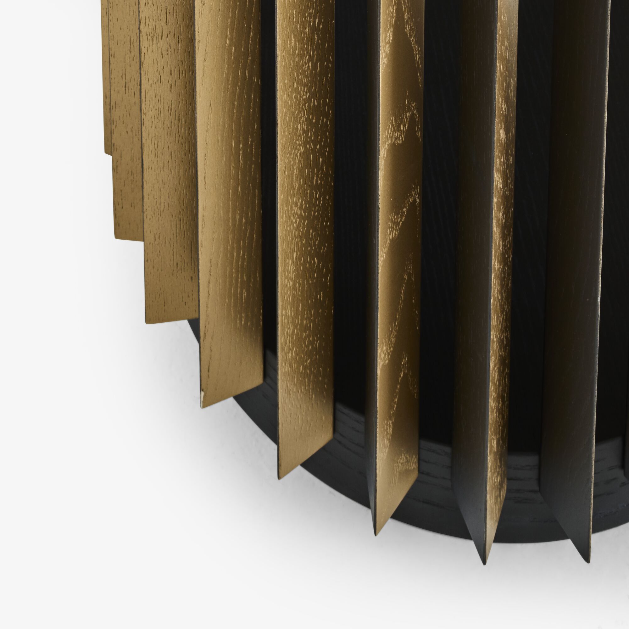 Lattes : frêne massif laqué bi-ton (patine bronze et teinte noir)